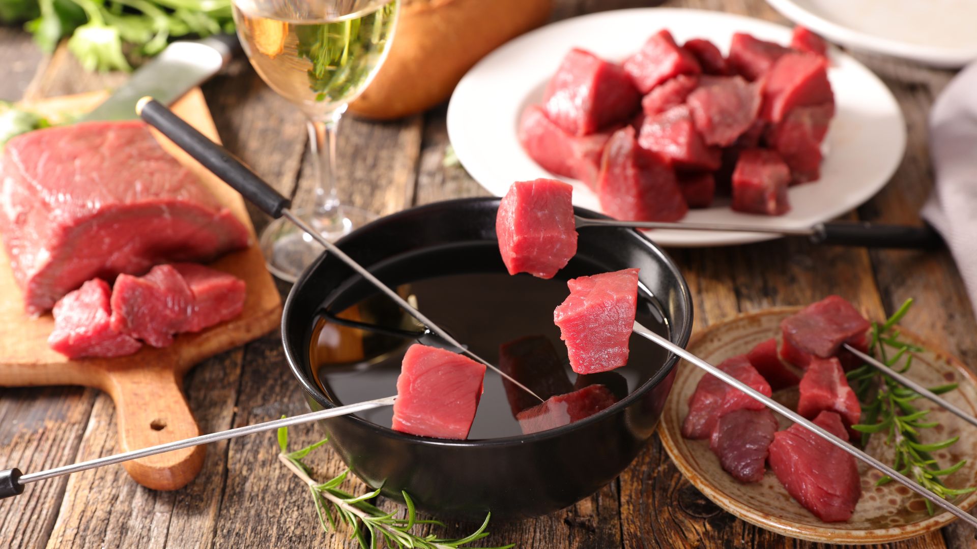 Vleesfondue (ook wel fondue Bourguignonne genoemd) is waarschijnlijk van alle soorten fondue wel het meest gekend in onze streken. Een 30-tal jaren geleden waaide het over en won dit aan populariteit bij onze bevolking. Kleine stukjes vlees worden hierbij in kokende olie gebakken. Het best gebruik je daarvoor vlees dat wegsmelt als boter in je mond!